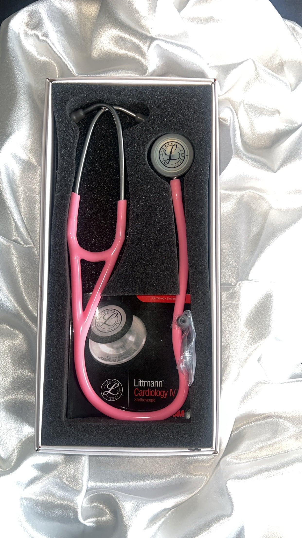 Cardio IV has double sided chest piece that allows the clinician to auscultate high and low sounds. This stethoscope is versatile and allows the clinician to switch from adults to peds patients. Comes in pink and black. Note: box is unmarked with replacement pieces included. No warranty on item.