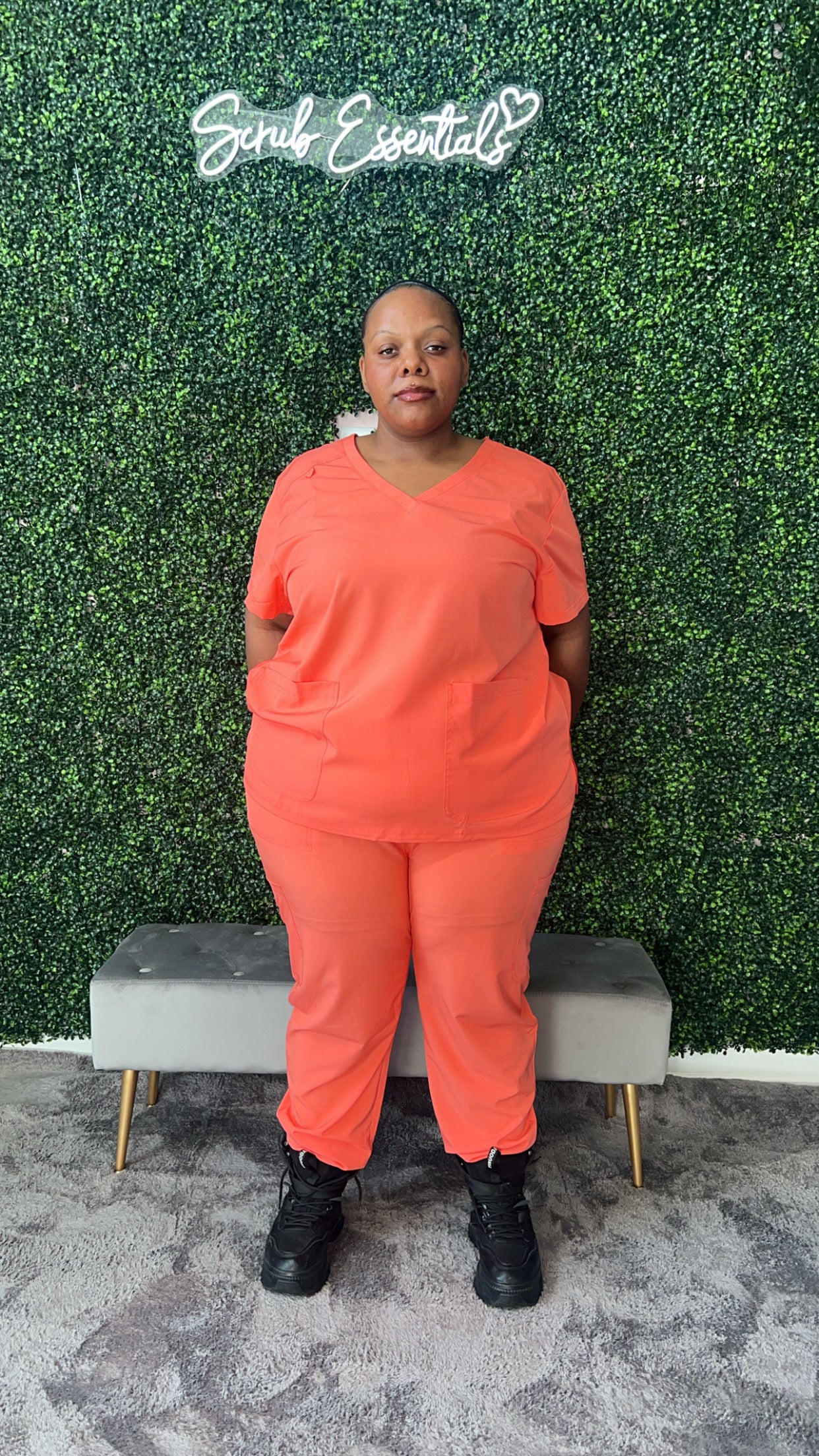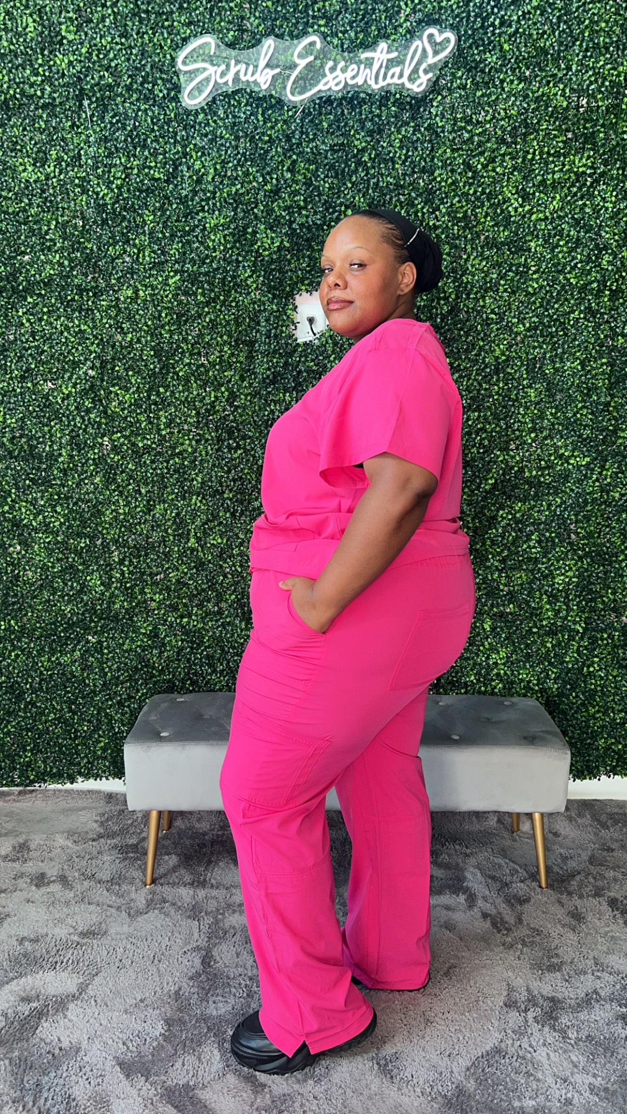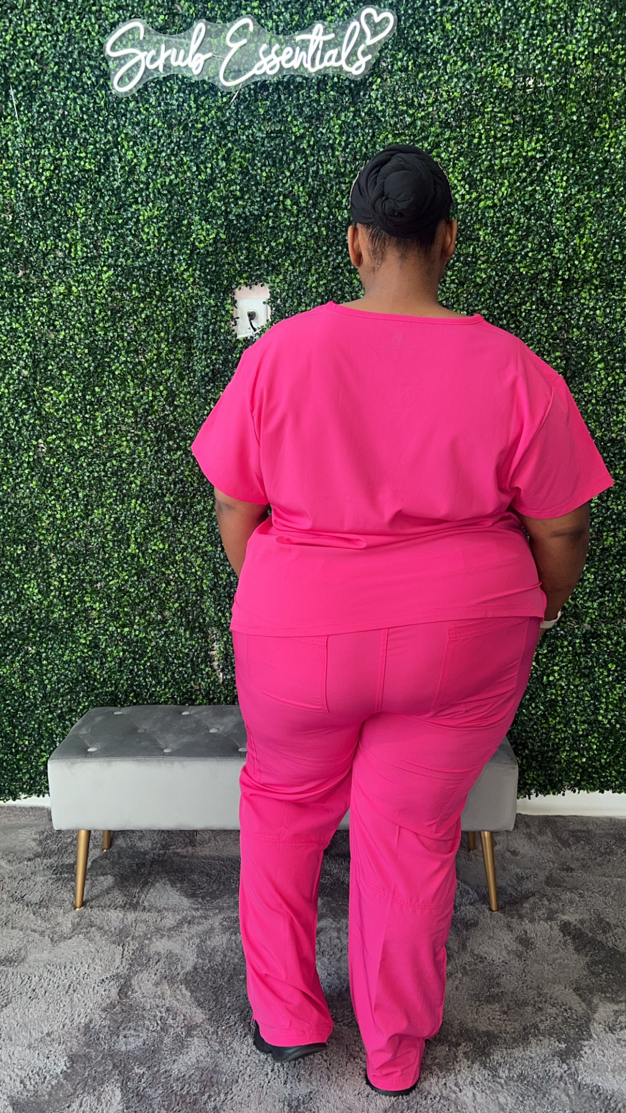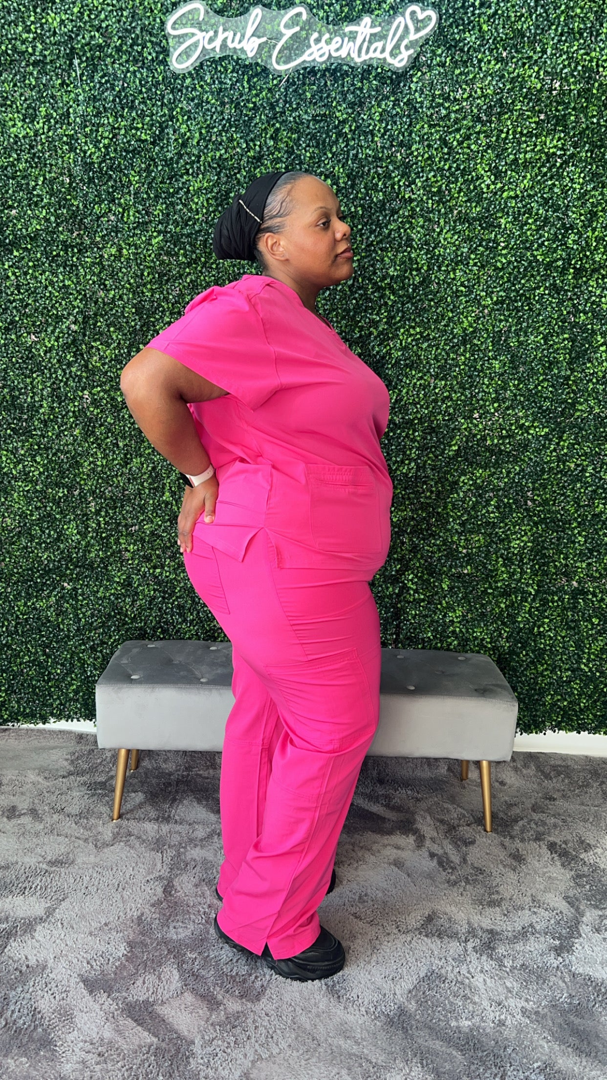 Premium stretch lavender colored scrub set. Plenty of pockets (8) moisture wicking and quick drying. 93% polyester 7% spandex. Sizes 3X available only