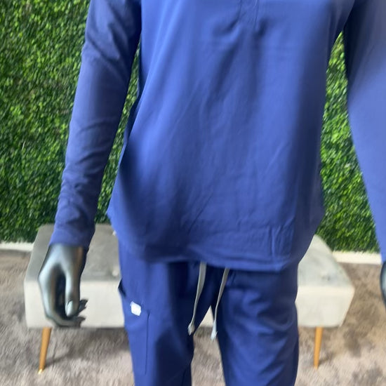 Top is sleeveless, with 2 pockets on each side. Joggers have adjustable waistband, back pocket 2 side pockets, and one lower side pocket for storage with the heart and stethoscope logo embroidered. Ribbed cuffs at the bottom of jogger for that tapered, silhouette effect. Pairs perfectly with a scrub undershirt for that perfect 🍂 look.