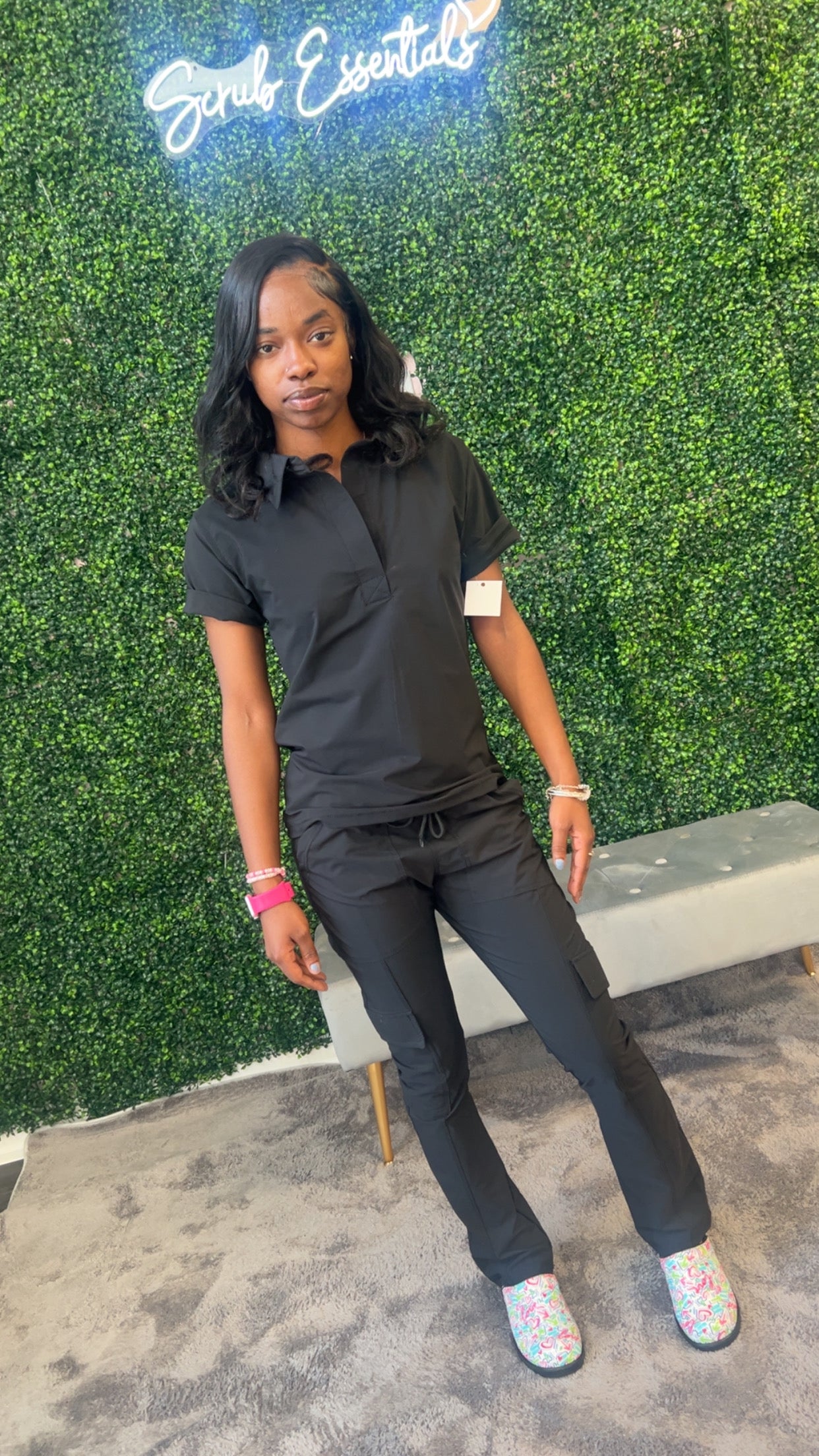 Luxe Stretch Collared Cargo Pocket Scrub Set